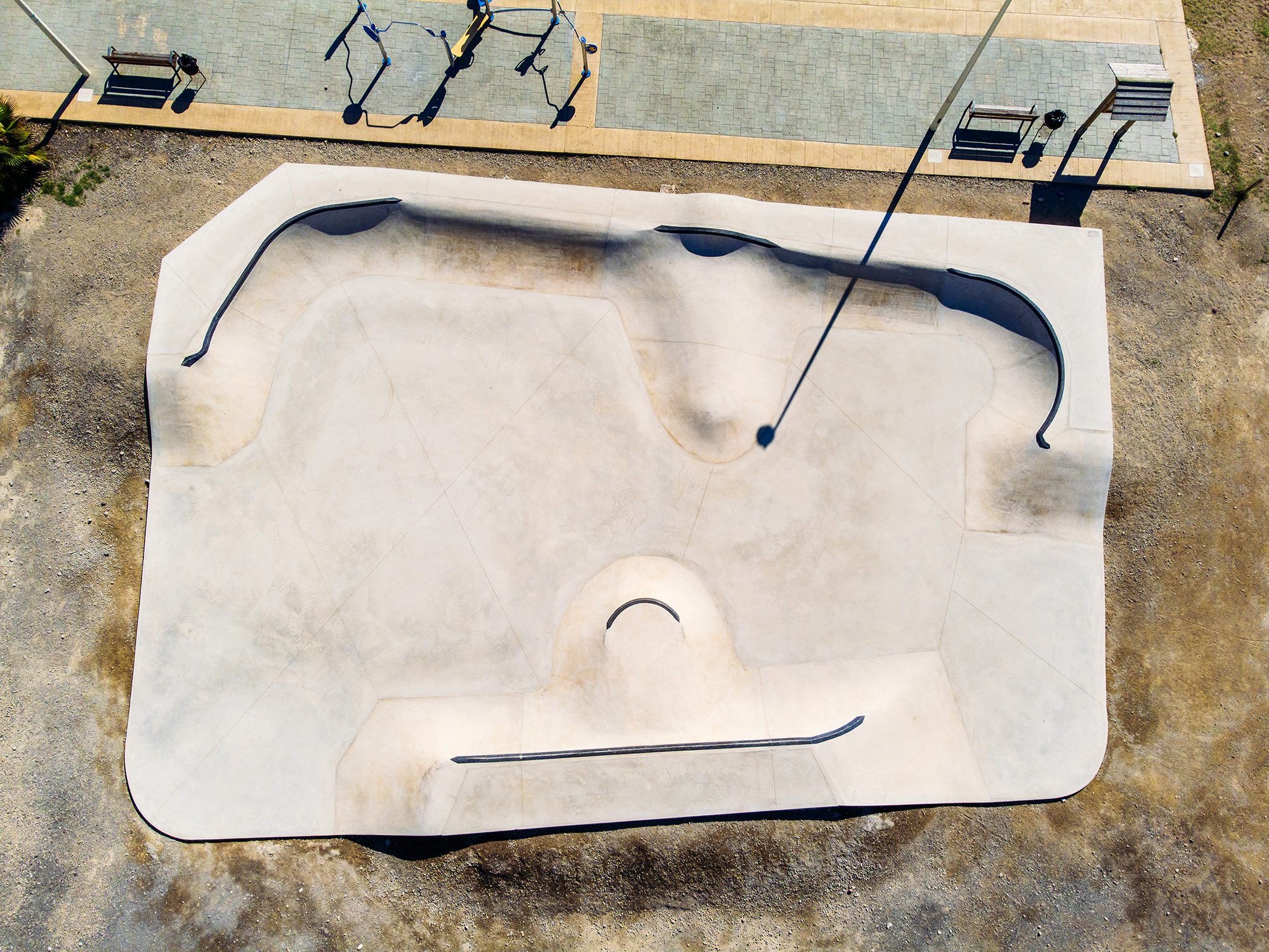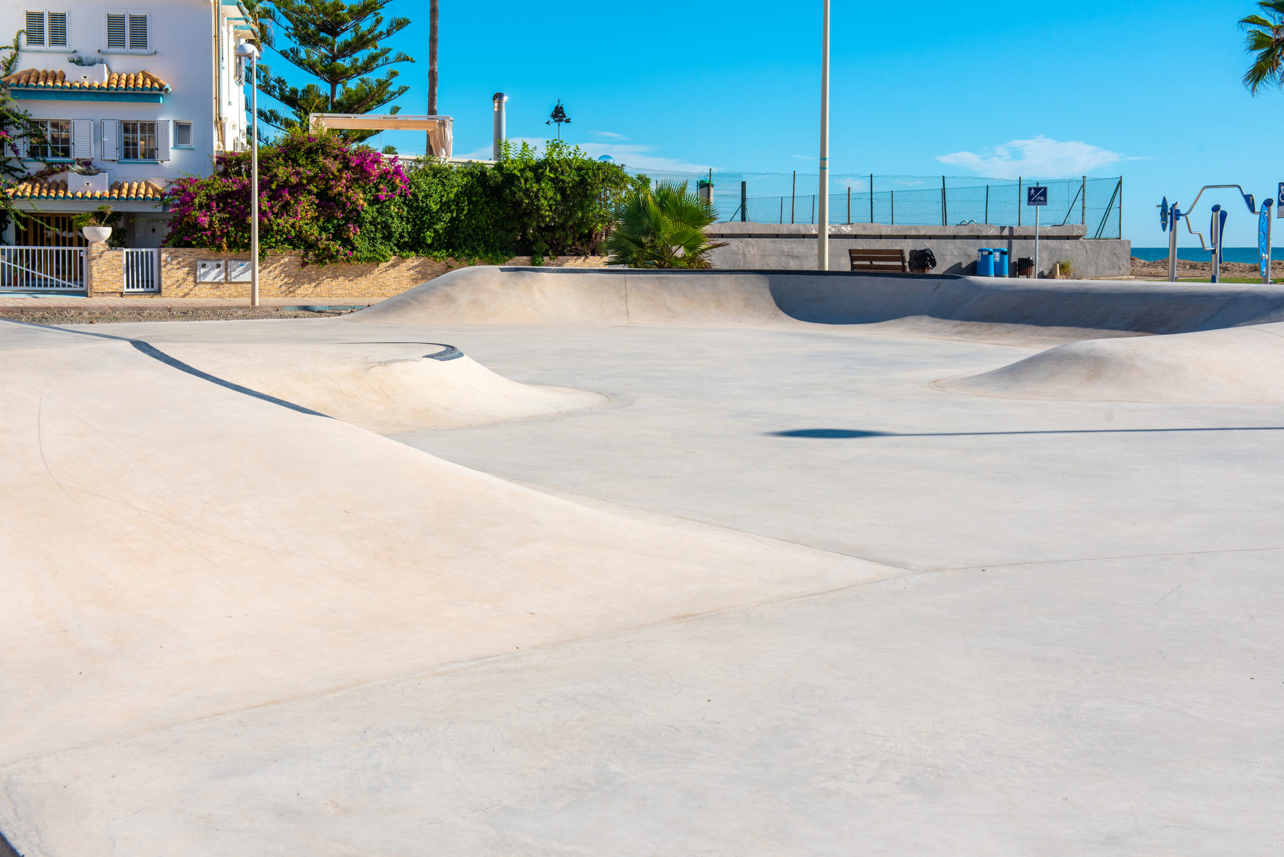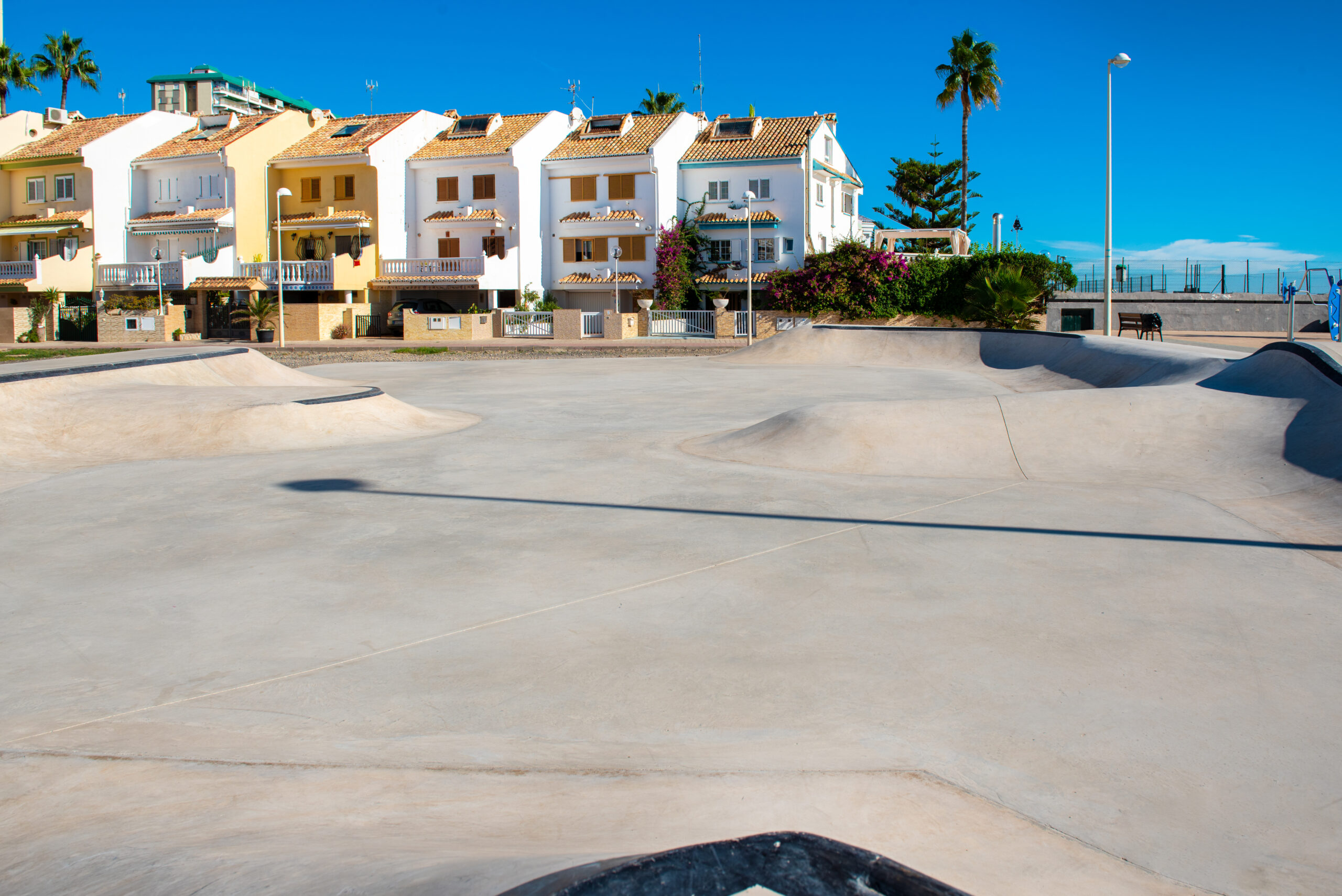 Se trata de unas instalaciones de aproximadamente 375 m2 que se han diseñado con elementos de baja altura para iniciar en la práctica de deportes sobre ruedas como el skate, scooter o patinaje. Se concibe como una losa estructural de hormigón pulido que modela de manera orgánica el terreno y da lugar a formas orgánicas y recorridos atractivos. El skatepark incluye planos inclinados, quarters y dunas con alturas aproximadas entre 60 y 80 cm que dan juego y divierten a los patinadores que quieren introducirse en este deporte.